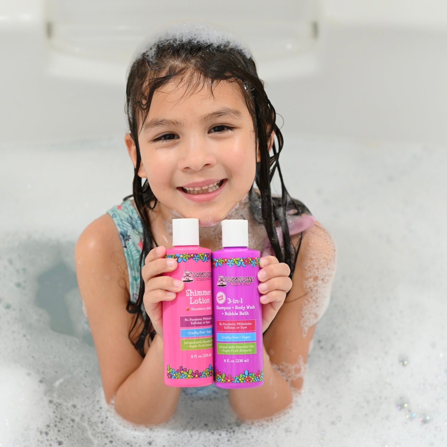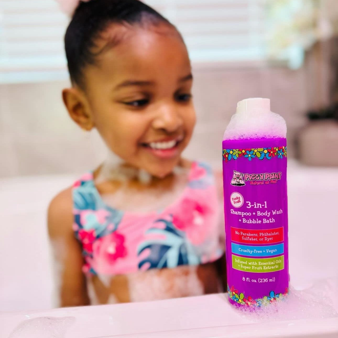 Make bath time a breeze with Piggy Paint 3-in-1—a gentle Shampoo, Body Wash, and Bubble Bath all in one magical bottle! Bursting with a yummy Funky Fruit scent, this multitasking must-have is perfect for busy parents and happy kiddos.