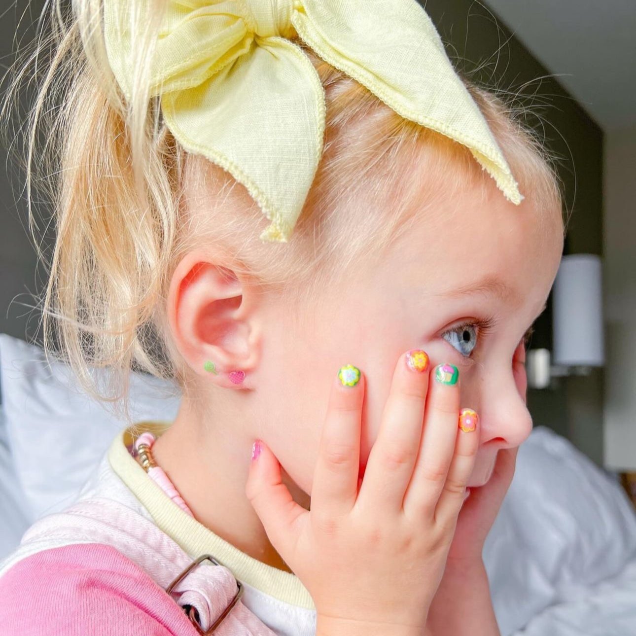 Paint your nails with your favorite Piggy Paint shade, then add these fun stickers for a creative and playful finishing touch! This Party Pack includes 4 adorable Nail Art designs: Heart, Blossom, Sweetie, Flowers – PLUS, Stick & Stay Earrings (which can be used on your nails or ears!). $14.95 Value! The Stick & Stay Earrings can be used on your nails or ears and will Stick & Stay until you’re ready to peel away!