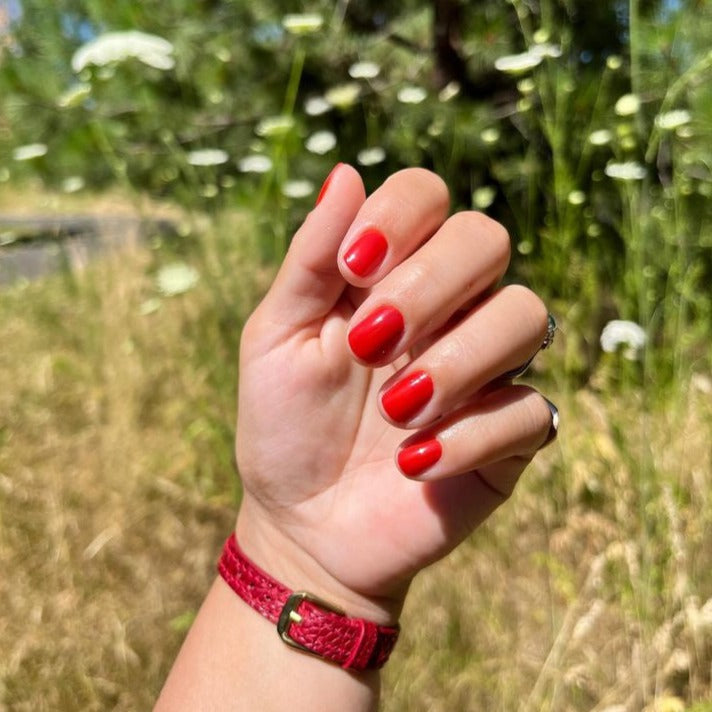 Pro Tip: Blow dry polished nails on warm heat/low blower setting for 1 minute. With no harsh chemicals, the heat cures polish fast.