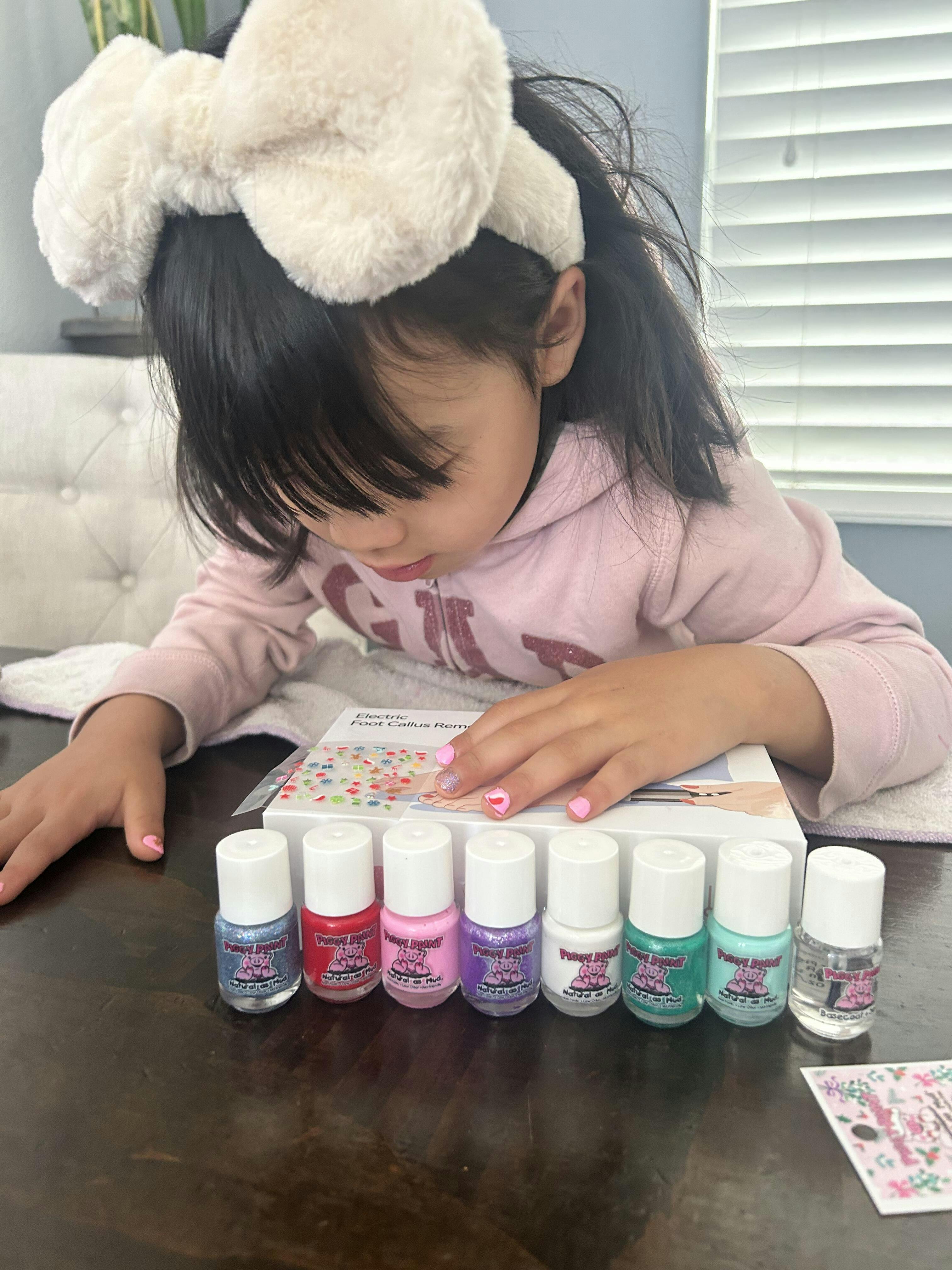 Piggy Paint nail polish is Non-toxic, Virtually Odorless, and Kid-friendly! This Advanced, Water-based formula Dries Hard - and Doesn’t Wash or Peel off. Plus, it's Safe for Babies, Toddlers, and Kids of all ages! Piggy Paint is a Premium brand that is trusted by parents (& created by a Mom!). ALL the Fun, with NO parabens, phthalates, or harsh chemicals!