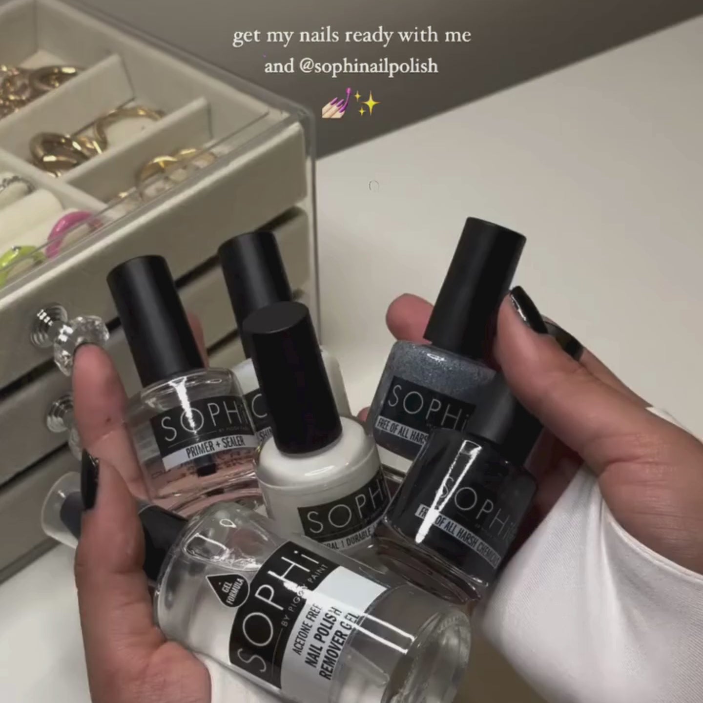 *Since SOPHi does not contain harsh chemicals, it does require these extra steps for chip and scratch resistance. The PRIME + SHINE + SEAL System is not needed for use on toenails.
