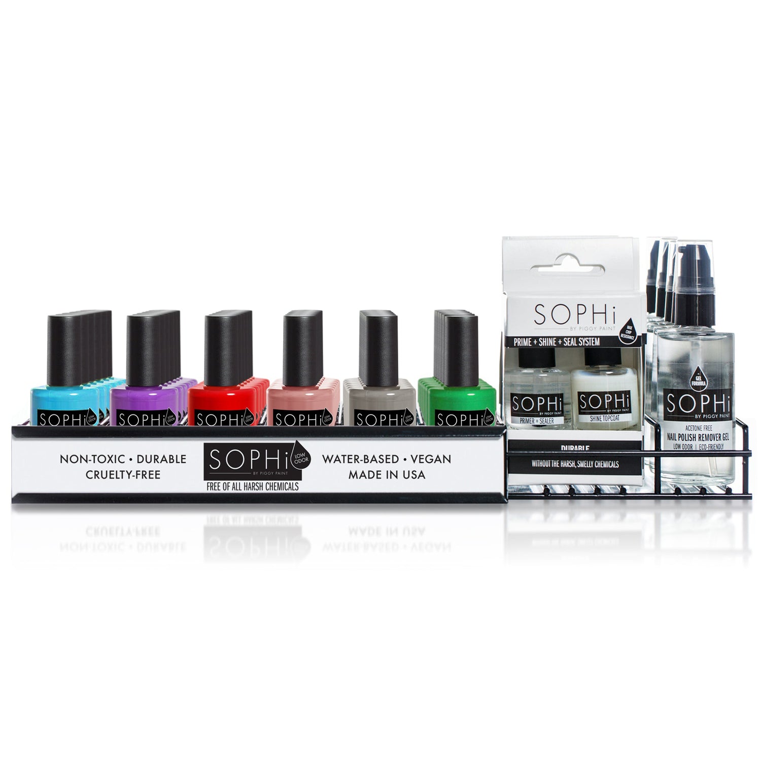 This 1 Tier Display contains an assortment of 36 Best-Selling SOPHi shades!