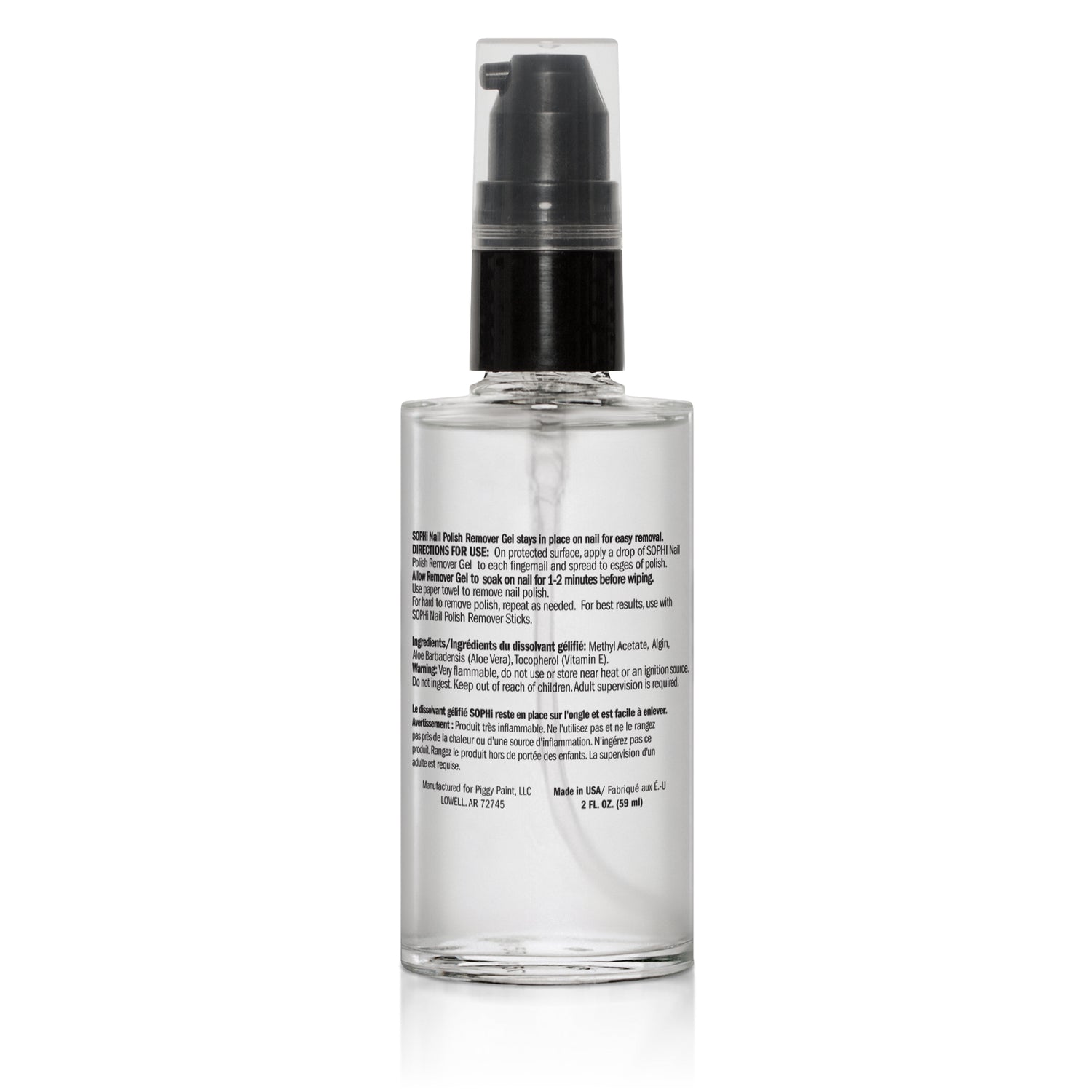 Directions for use: On protected surface, apply a drop of SOPHi Remover Gel to each fingernail and spread to edges of polish. Allow to soak on nail for 1 minute. Use paper towel to remove nail polish. For hard to remove polish, repeat as needed. For best results, use with SOPHi Nail Polish Remover Sticks. The remover sticks help to lift and peel the polish from the nail once the Gel Remover has soaked through.