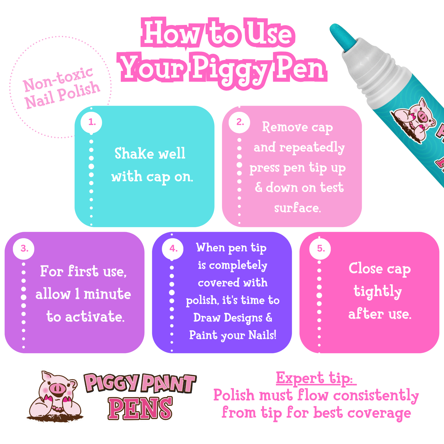 Twirly Teal Piggy Paint Pen - Kids Non-toxic Nail Polish